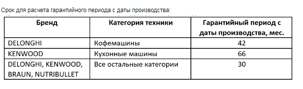 Гарантийный срок на кофемашины: